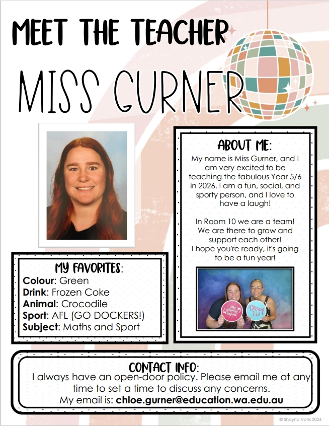 Miss Gurner will be teaching Tuesday - Friday and Miss Lincoln will teach Mondays.